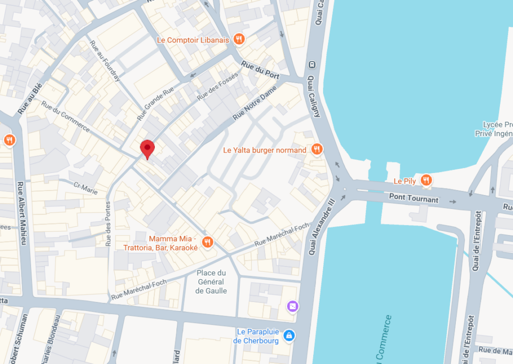 La librairie se situe au 6 rue des Fossés, à Cherbourg-en-Cotentin (50100).